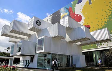 邀請日本知名建築設計師-隈研吾設計,洄瀾門市的設計以貨櫃與綠建築標準打造,還有環保節能咖啡得來速設計,除此之外白色貨櫃屋交錯連結,遠遠看還更有積木風格