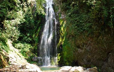 桃山瀑布又名煙聲瀑布,瀑布海拔高約2200公尺,落差約80公尺,位於武陵國家森林遊樂區內桃山步道的終點處。步道前段的林相主要是台灣二葉松、台灣赤楊與栓皮櫟等針闊葉樹混生林,隨著海拔漸高,林相漸轉為混雜針葉林造林及天然植被。